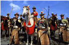 of drummers, extravagant costumes dazzle the skyline and a crowd of