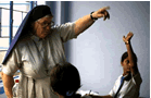 the image of a full-figured, grey haired, bespectacled Catholic sister