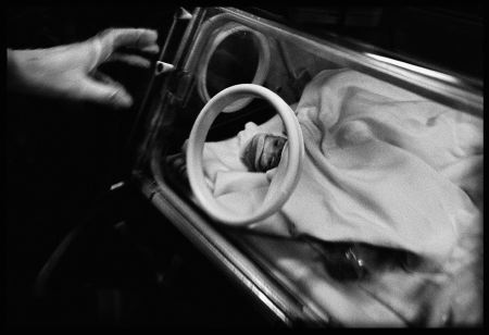 - A new-born baby is taken to the hospitals department for early-born children. The parents haven¥t seen their child yet.